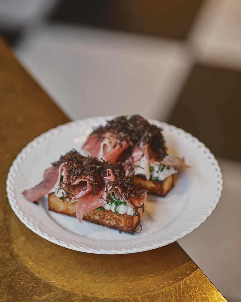 Stegt fermenteret kartoffelbrød med pisket crème fraiche og Kalix löjrom