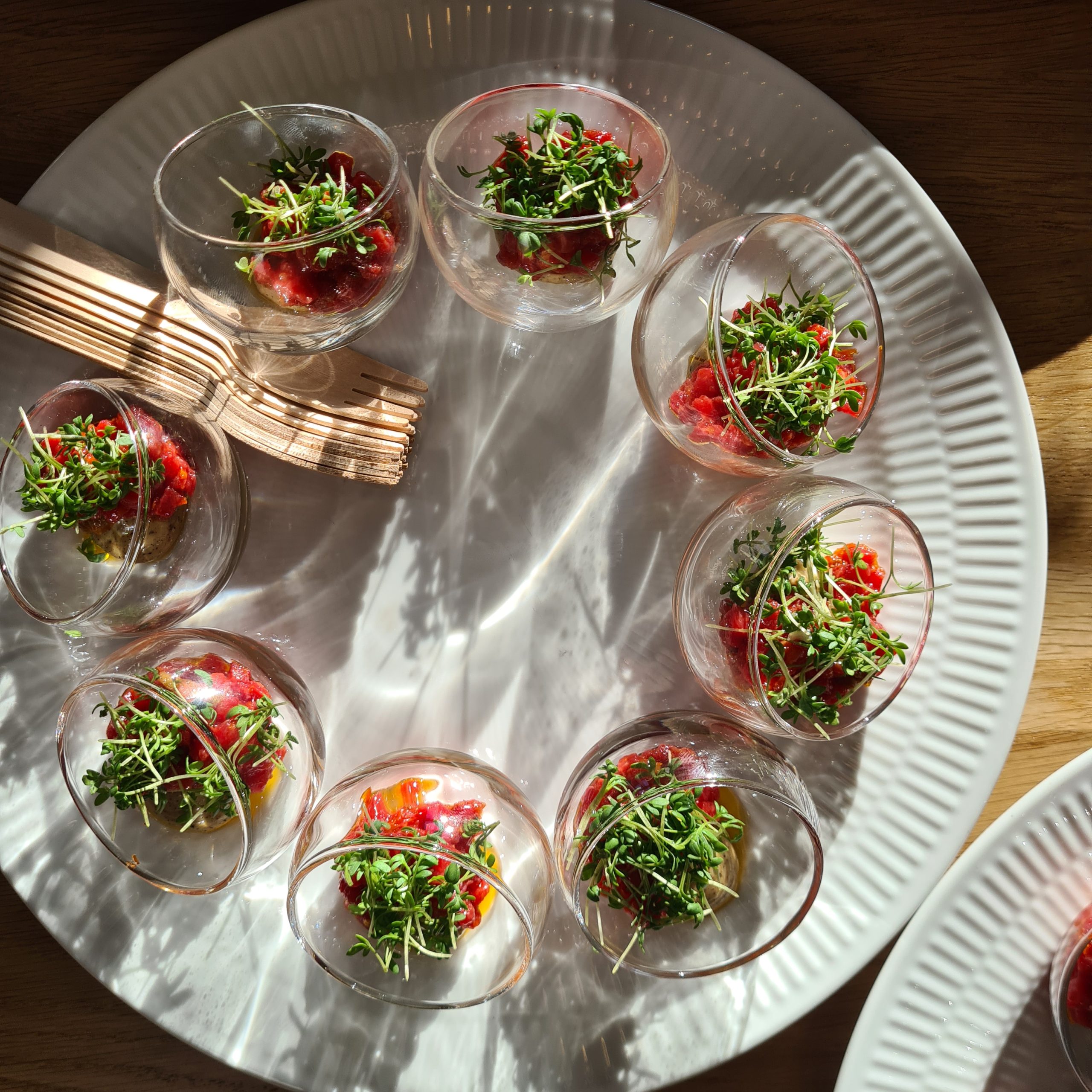 Kanapéer fra Chambre er perfekte til lejligheder hvor maden skal kunne spises stående uden kniv & gaffel, som perfekt kan nydes med et glas bobler på siden.
