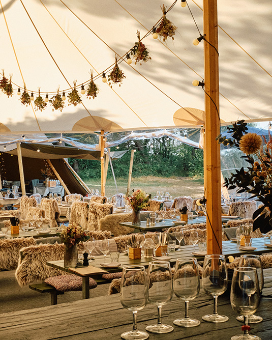 Part of the menu is cooked over open fire on the large Ofyr grill, which guests encounter upon arrival at the tent.