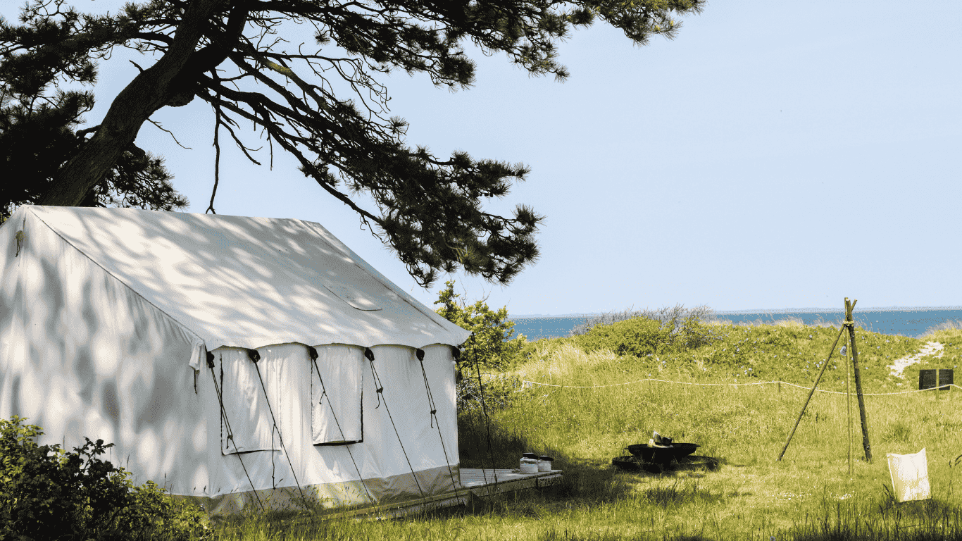 Sky and sea meet right outside your tent. The sound of the waves, the breeze rustling the canvas, and the scent of saltwater create a stillness unlike anything else. When the sun sits low over the water, everything turns golden – and the day settles at its own pace.