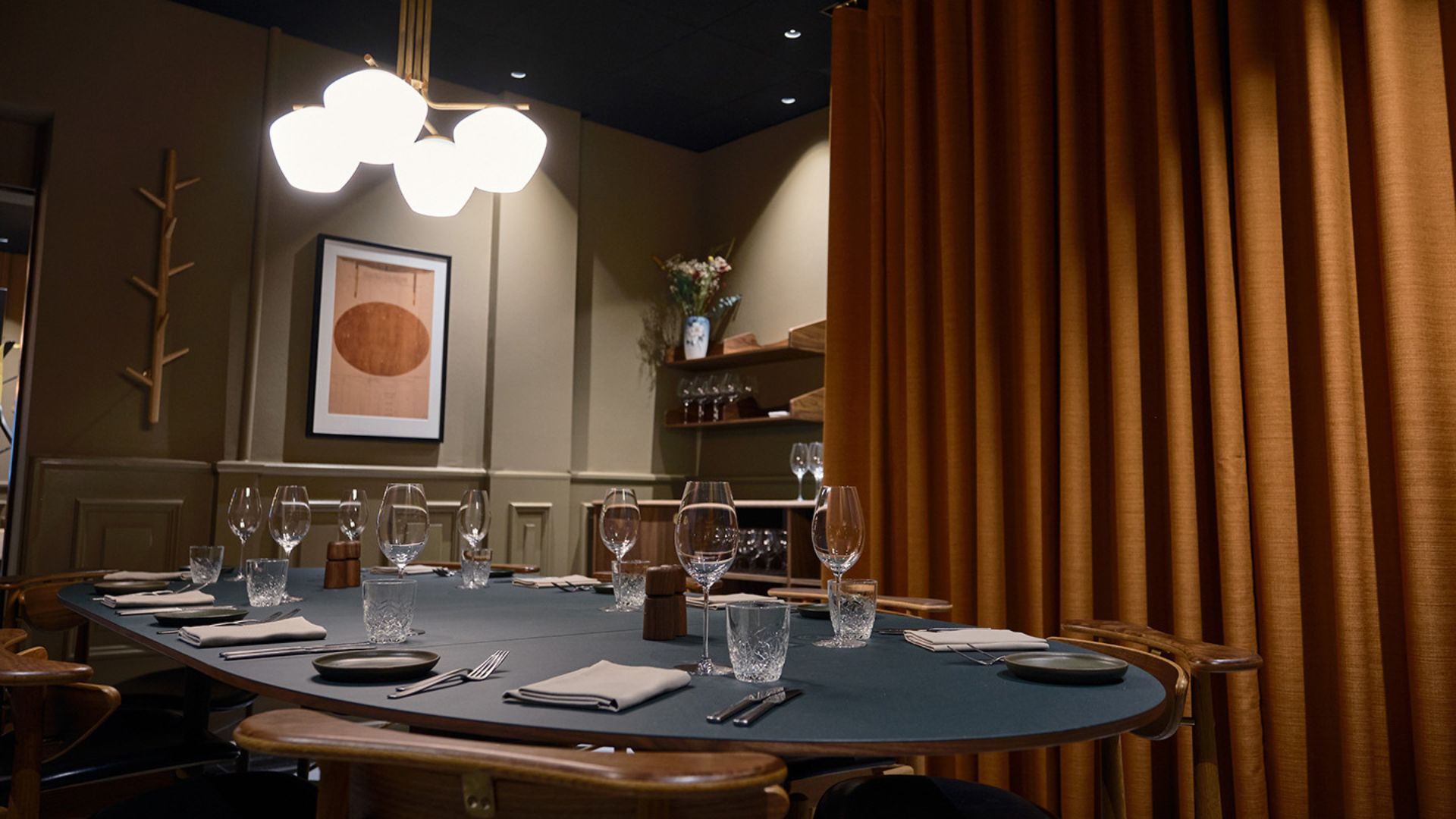 Ønsker I en afskærmet oplevelse uden at være helt adskilt fra restaurantens atmosfære? I bagerste del af restauranten kan vi skabe et mere intimt rum til op til 30 personer, hvor et gardin sikrer en privat oplevelse.
